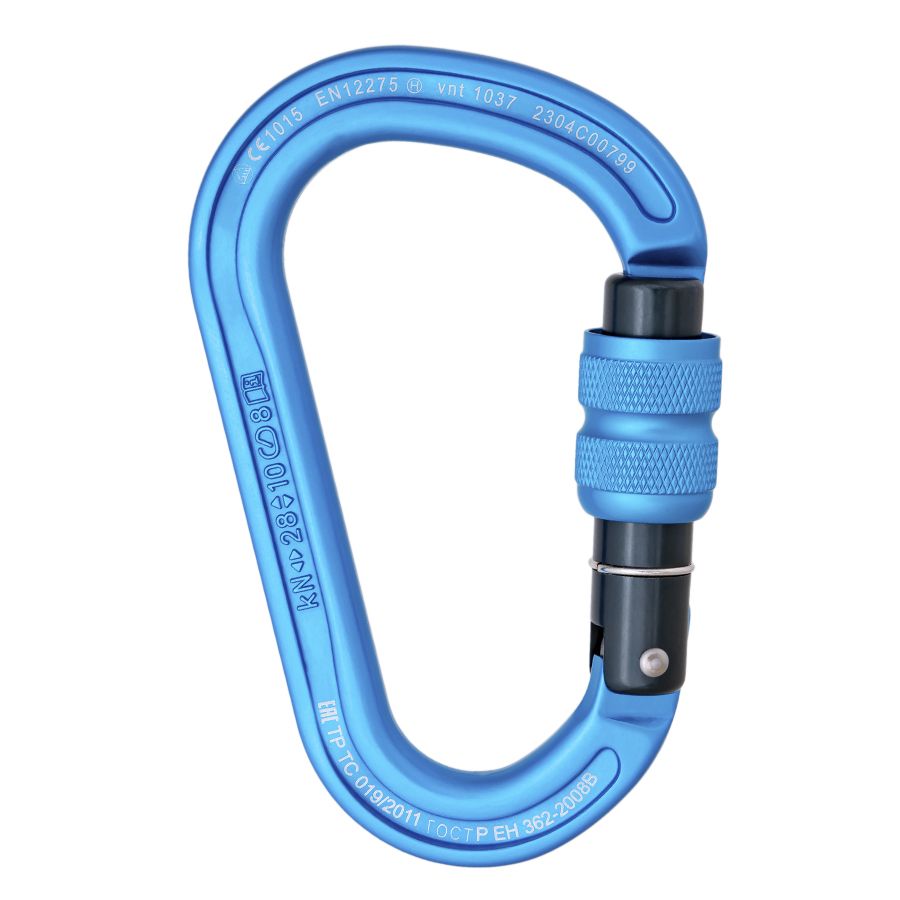 Карабин HMS формы с резьбовой муфтой имеет широкий спектр применения, удобен для работы со спусковыми устройствами, для организации станций и полиспастов. Данная форма лучше всего подходит для использования с узлом UIAA.